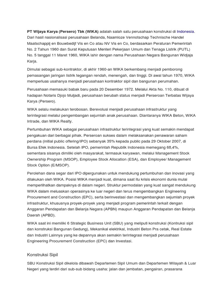 We have products that come from famous producers and manufactures in the world. Pt wijaya karya intrade established 2000 with 800 employees and had four business units, include general trading. (wika) merupakan badan usaha milik negara (bumn) yang beroperasi dalam penyediaan jasa konstruksi. Perusahaan ini merupakan hasil nasionalisasi perusahaan belanda. Salah satu petinggi perusahaan pelat merah itu merupakan tersangka kasus korupsi pembangunan jembatan waterfront city tahun anggaran.